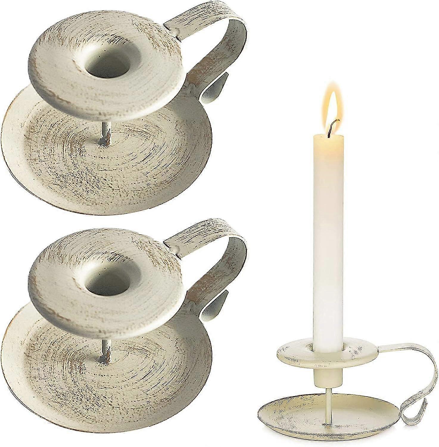 Candlestick, 2 Pieces Retro Candlestick, Metal Candlestick, Chamberstick, White Wrought Iron Candle Holder, Decorative Candle Holder For Christmas, Ha