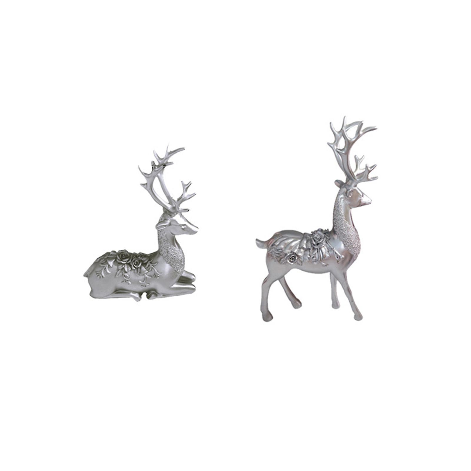 2pcs Elk Ornament Exquisite Deer Sculpture Set Elegant Reindeer Ornament For Holiday Christmas Decoration