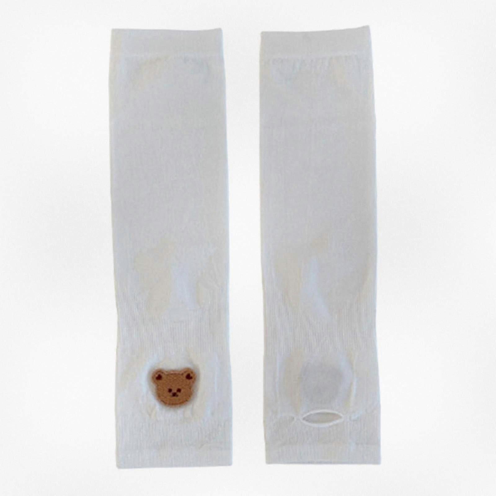 2Pcs Kids Sun Protection Arm Sleeves, Cooling UV Protective Anti-Slip Ice Silk Arm Covers for Boys and Girls, White Bear Design