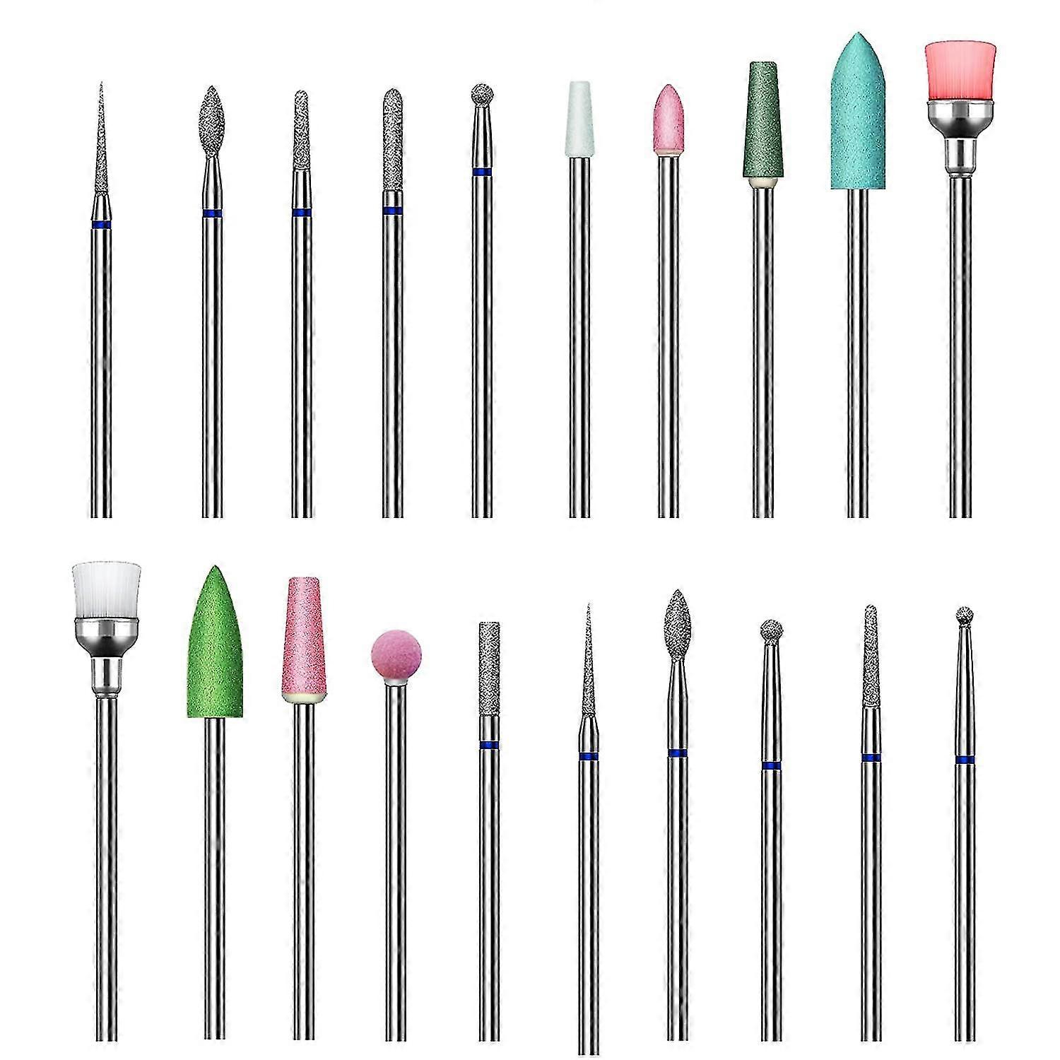 20 Pcs Nail Drill Bits Set For Acrylic Nails, Professional Diamond Cuticle Remover Bits Kit With Box, 3/32" Electric Manicure Nail File Bit