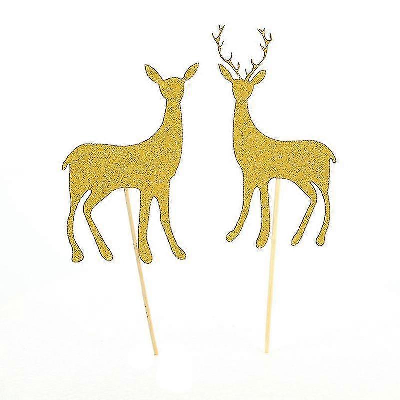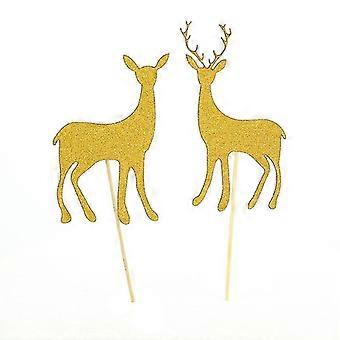 20 Pcs Delicate Deer Dedsign Insert For Birthday Party Cake Dessert Decoration Golden