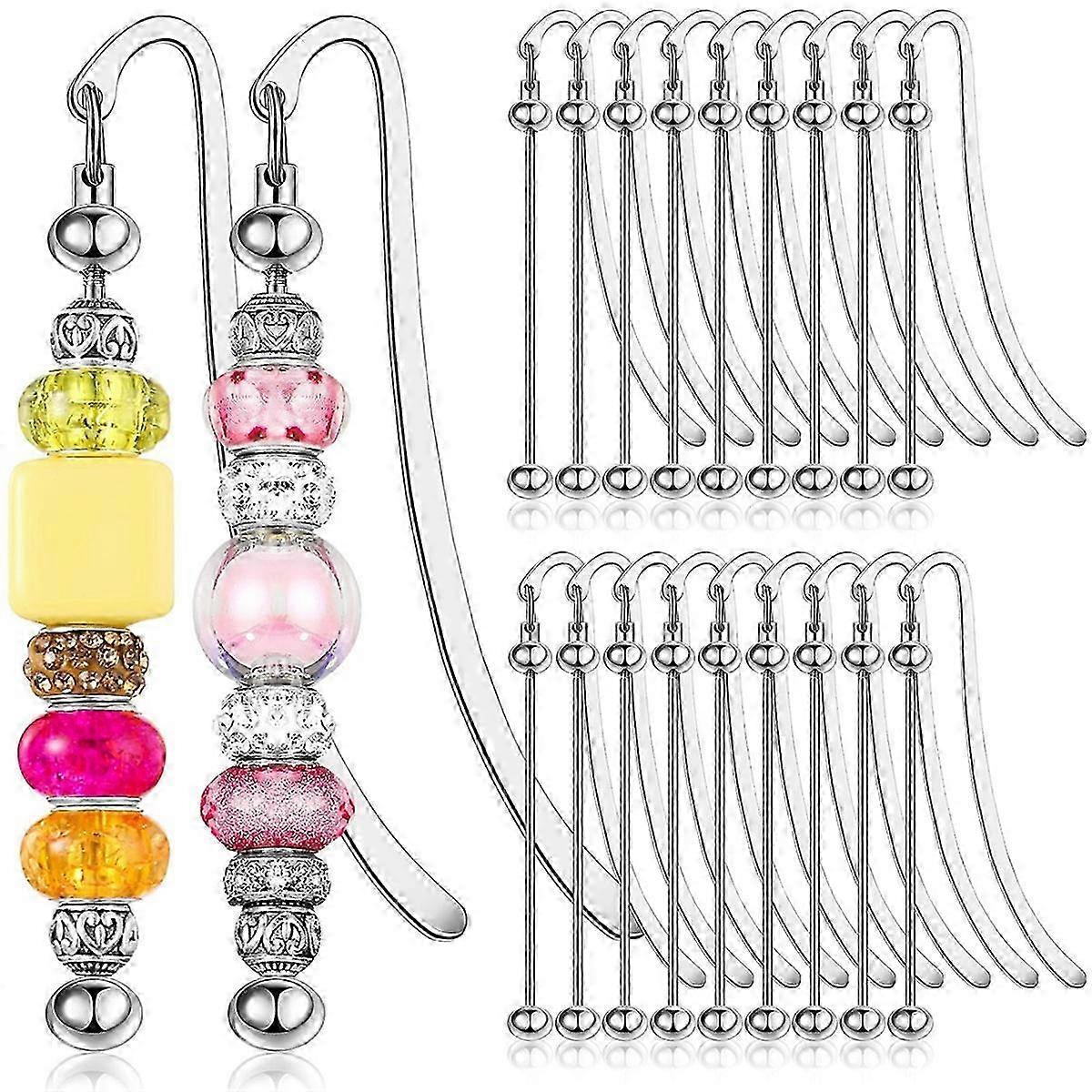 20 Pcs DIY Metal Blank Bar Bookmarks Silver for Beads, Modern Beaded Bookmark Craft Jewelry Pendant