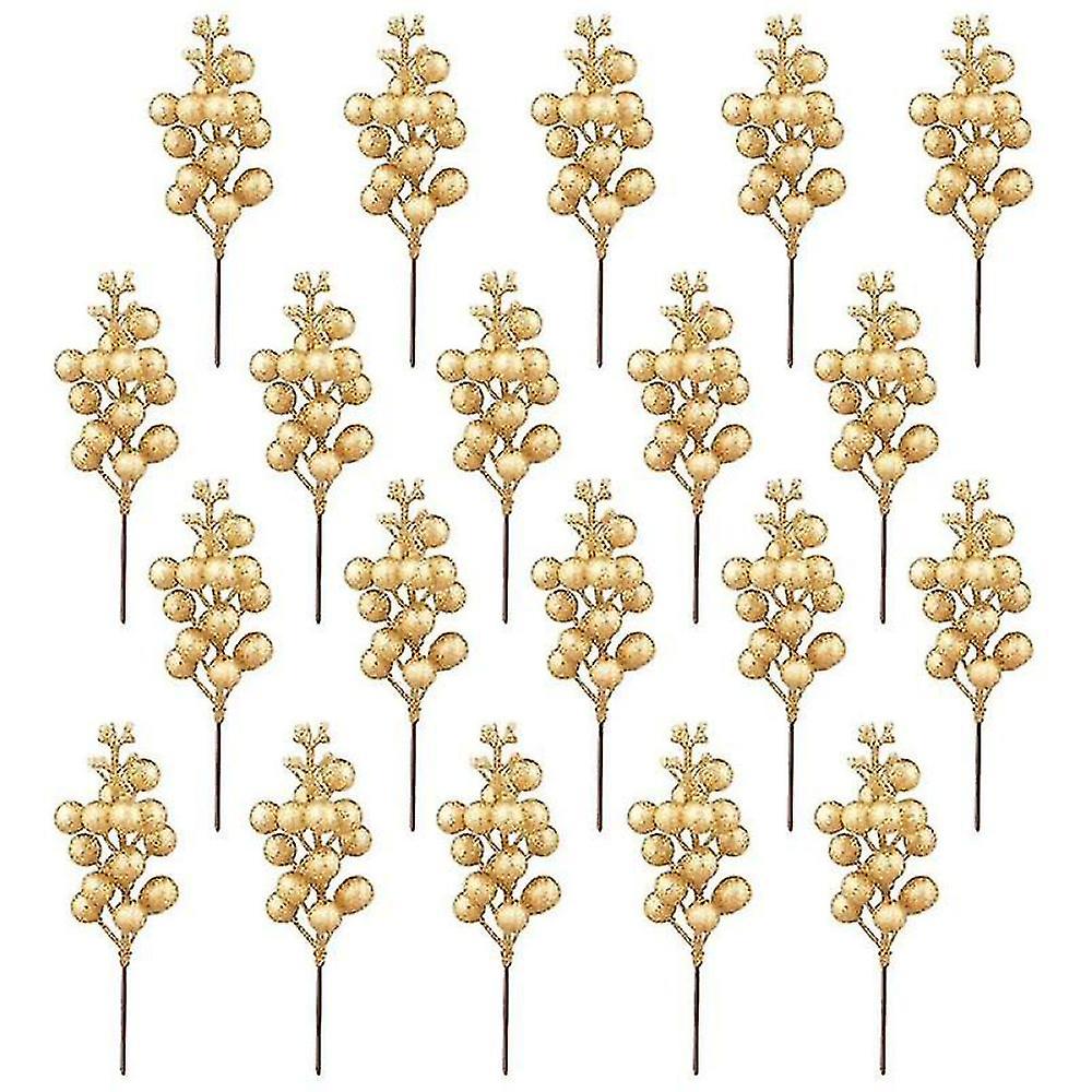 20 Pc Artificial Berry Stems, 7.5 Inches Christmas Glitter Berries Stems,artificial Christmas Picks For Xmas Tree(gold)