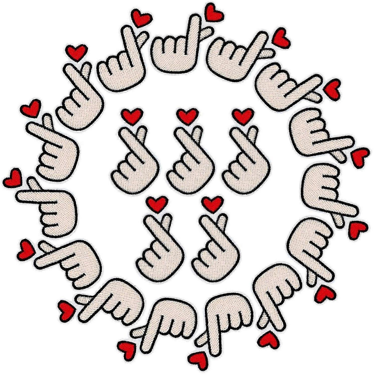 20PCS Korean Kpop Finger Heart Sew on Embroidery Patch, for Jeans