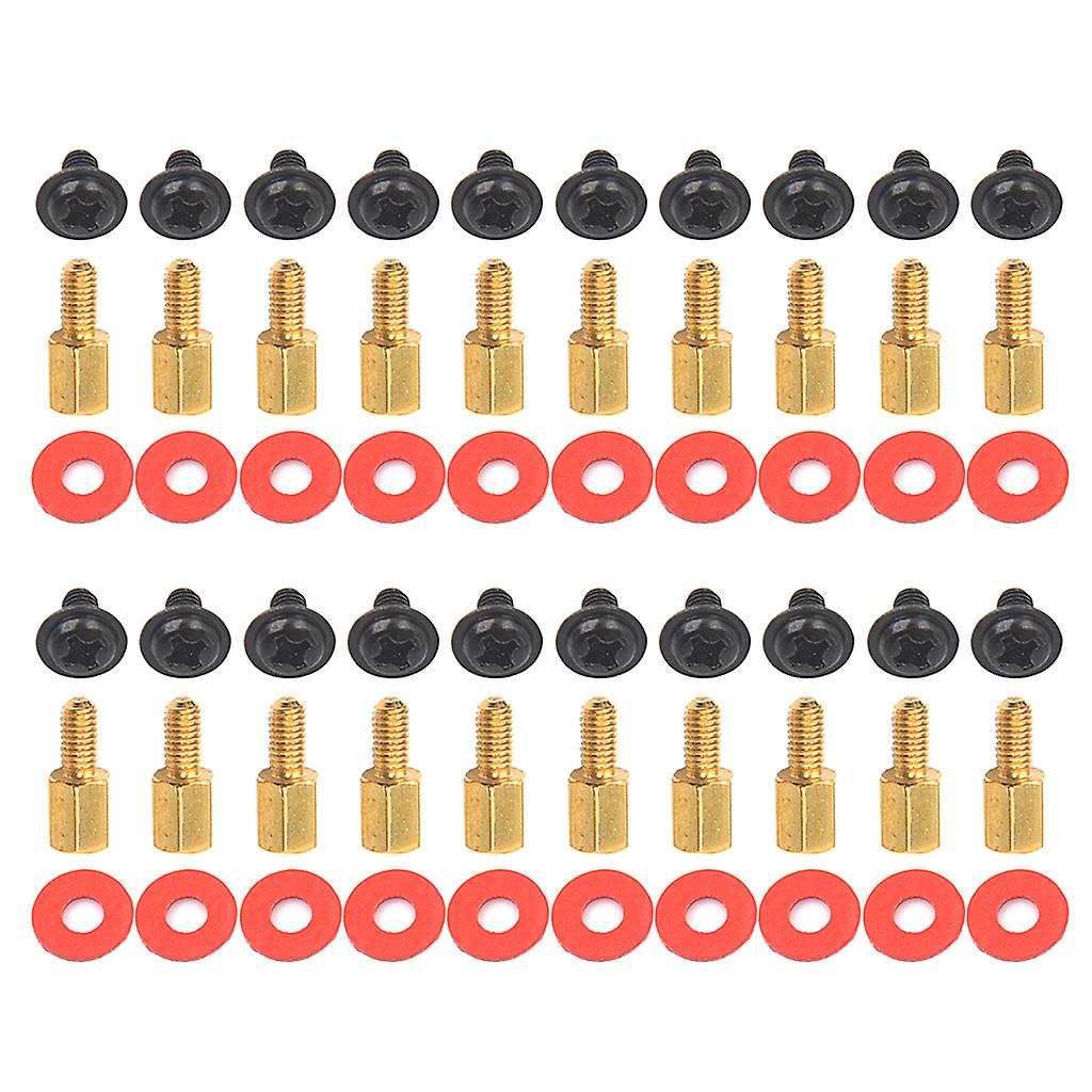 20 Pcs Golden Motherboard Riser+Screws Computer Red Washers 6.5mm 6-32-M3 Gasket