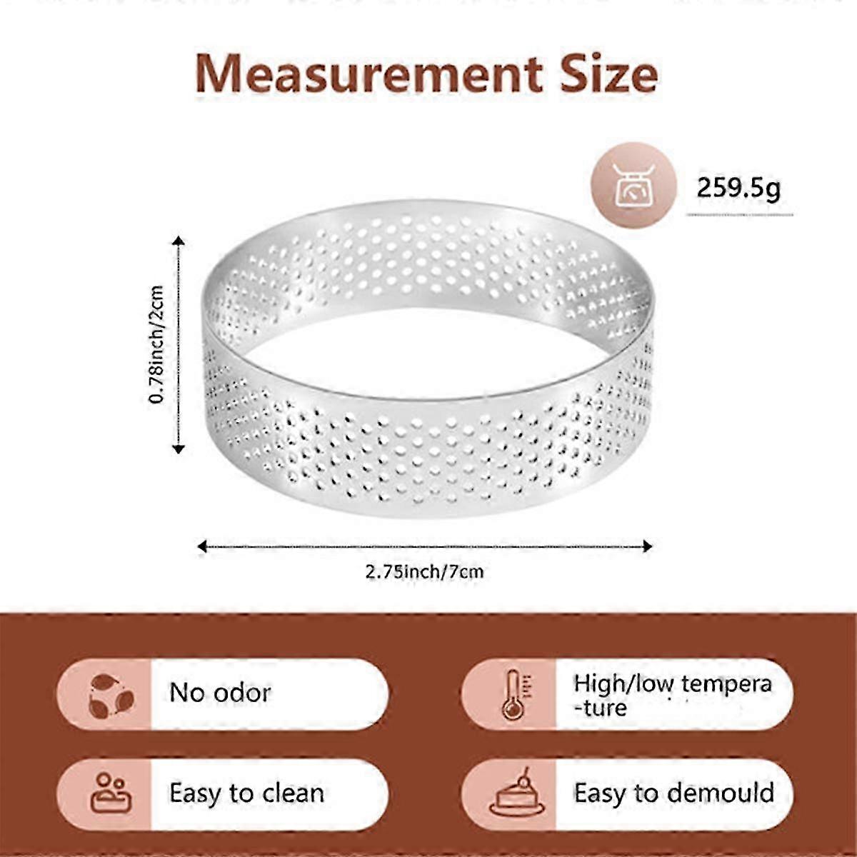 20Pcs Circular Tart Rings with Holes Stainless Steel Fruit Pie Quiches Cake Mousse Mold Kitchen Bak