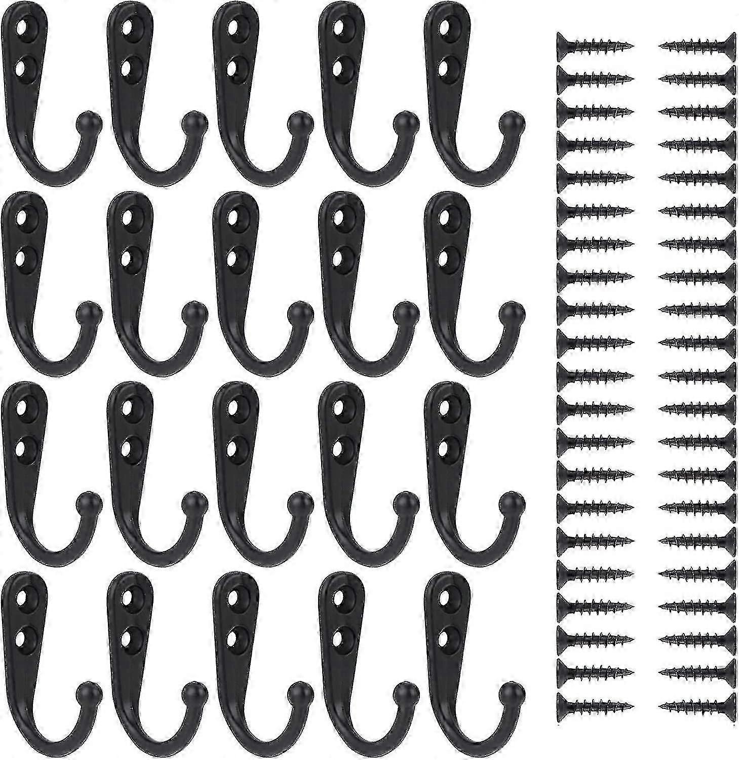 20 Pieces Retro Coat Hook Metal Wall Mounted Coat Hooks With Screws For Kitchen, Drawers, Bath - Black