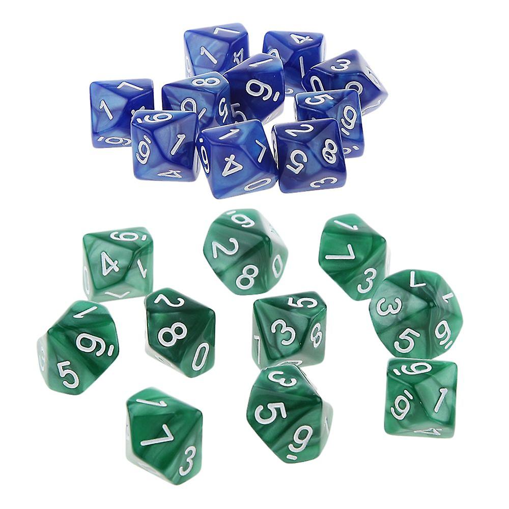 20pcs Ten Sided Die Dice D10 For D U0026 D Rpg Party Game Mtg Toy Green And Blue