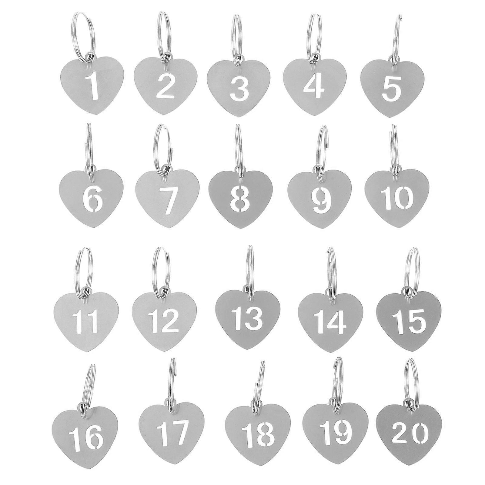 20Pcs Heart Shaped Numbered Tags for Key Organization Made of Titanium Steel Silver Color