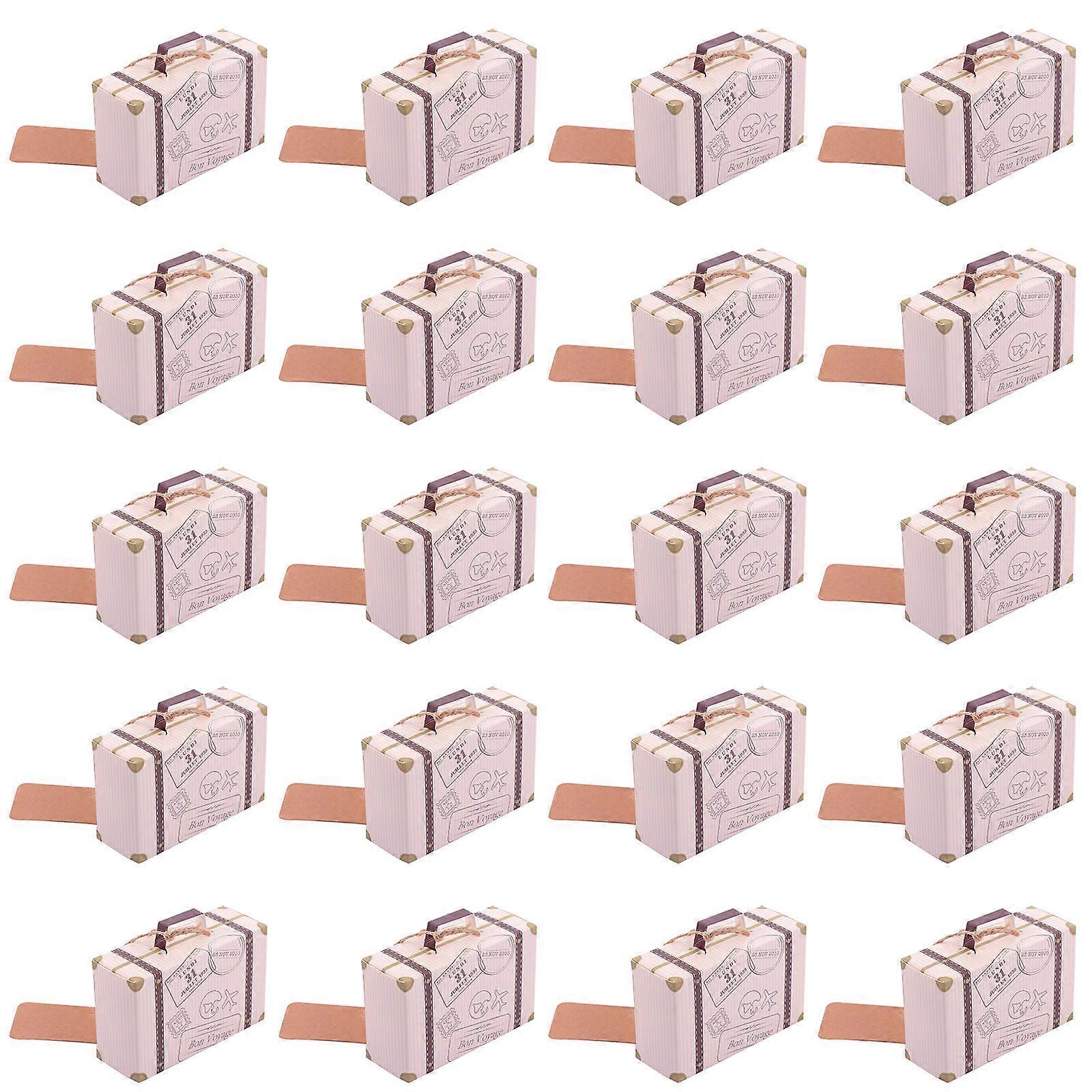 20pcs Vintage Suitcase Shaped Wedding Candy Boxes, Kraft Paper Storage Gift Boxes for Party Favors & Small Item Packaging