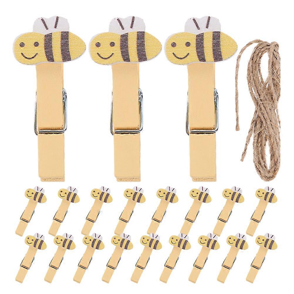 20pcs Mini Wooden Bee Clothespins with Jute Rope – Decorative Photo Clips for Crafts, Small Picture Clamps for Home Decor & Snack Organization