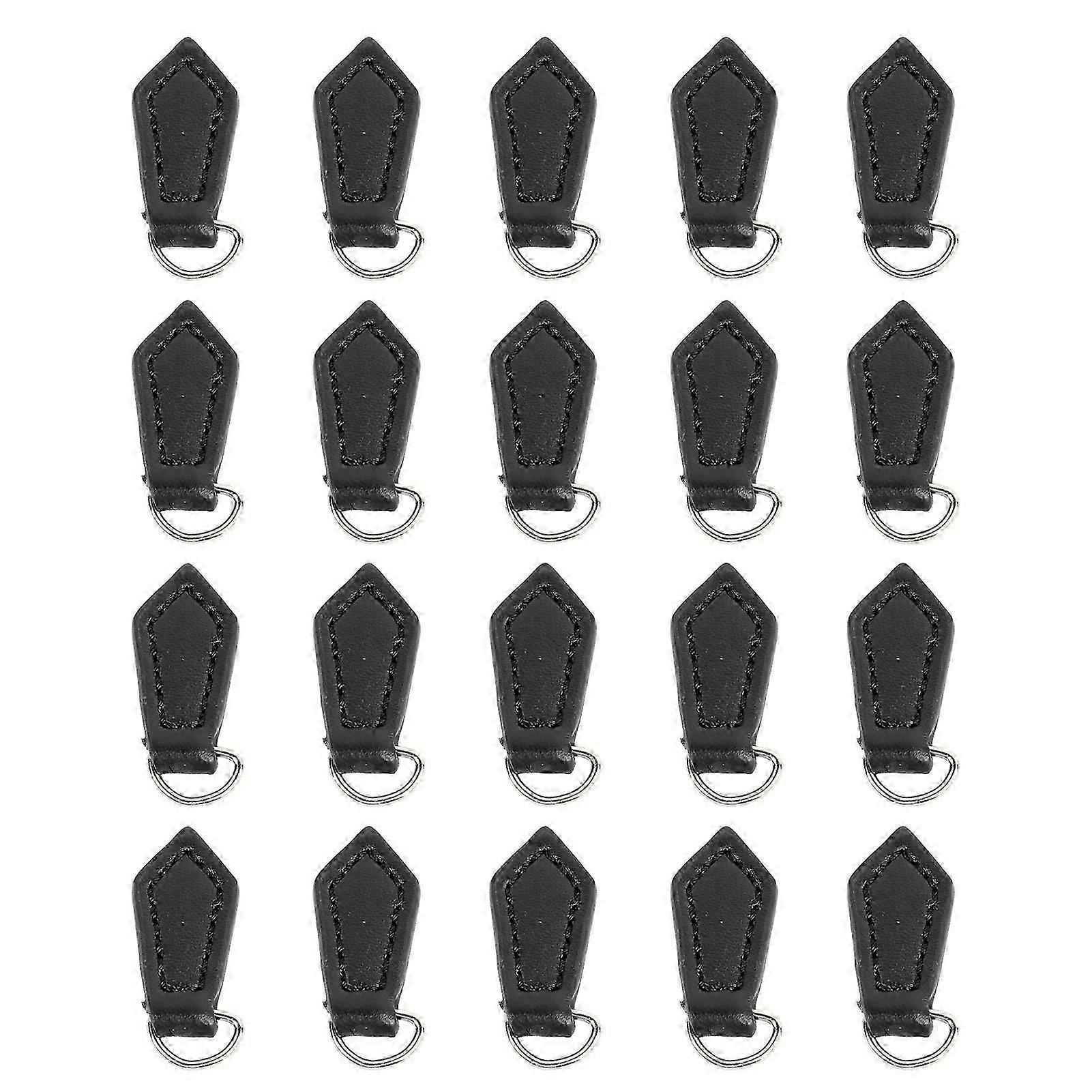 20pcs Rhombus Genuine Leather Zipper Pull Handcraft Zipper Tags Zipper Head Replacement for Handbags Suitcases Luggage Black Gold D Ring