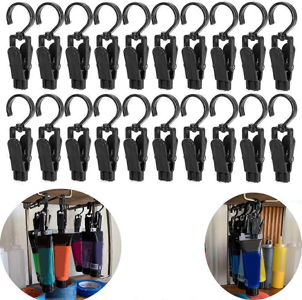 20 PCS Super Strong Plastic Home Travel Swivel Hanging Laundry Hooks Clip - 4.3 Inches (Black)