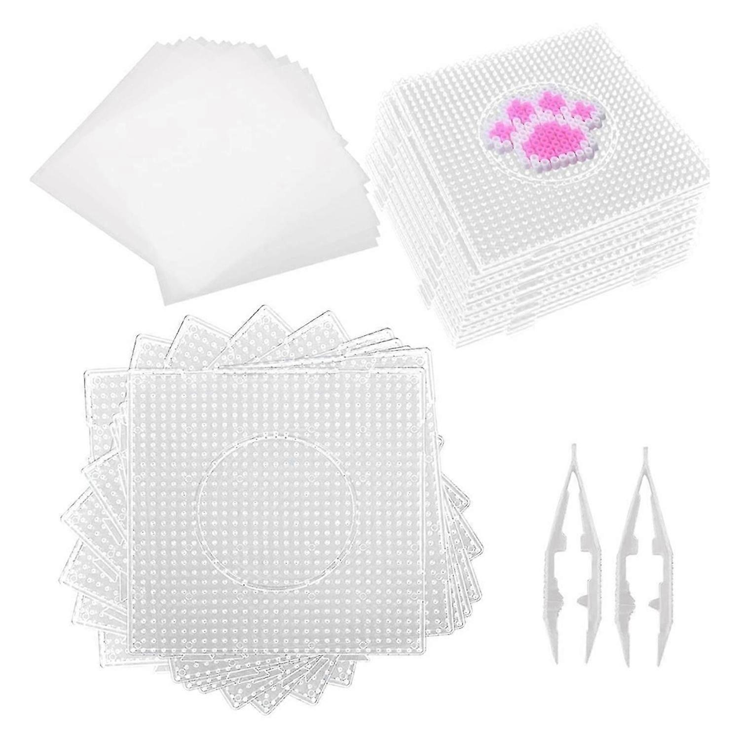20 PCS Large Fuse Beads Pegboards Square Plastic Bead Boards 5mm Clear Fuse Beads Boards Plastic Mel