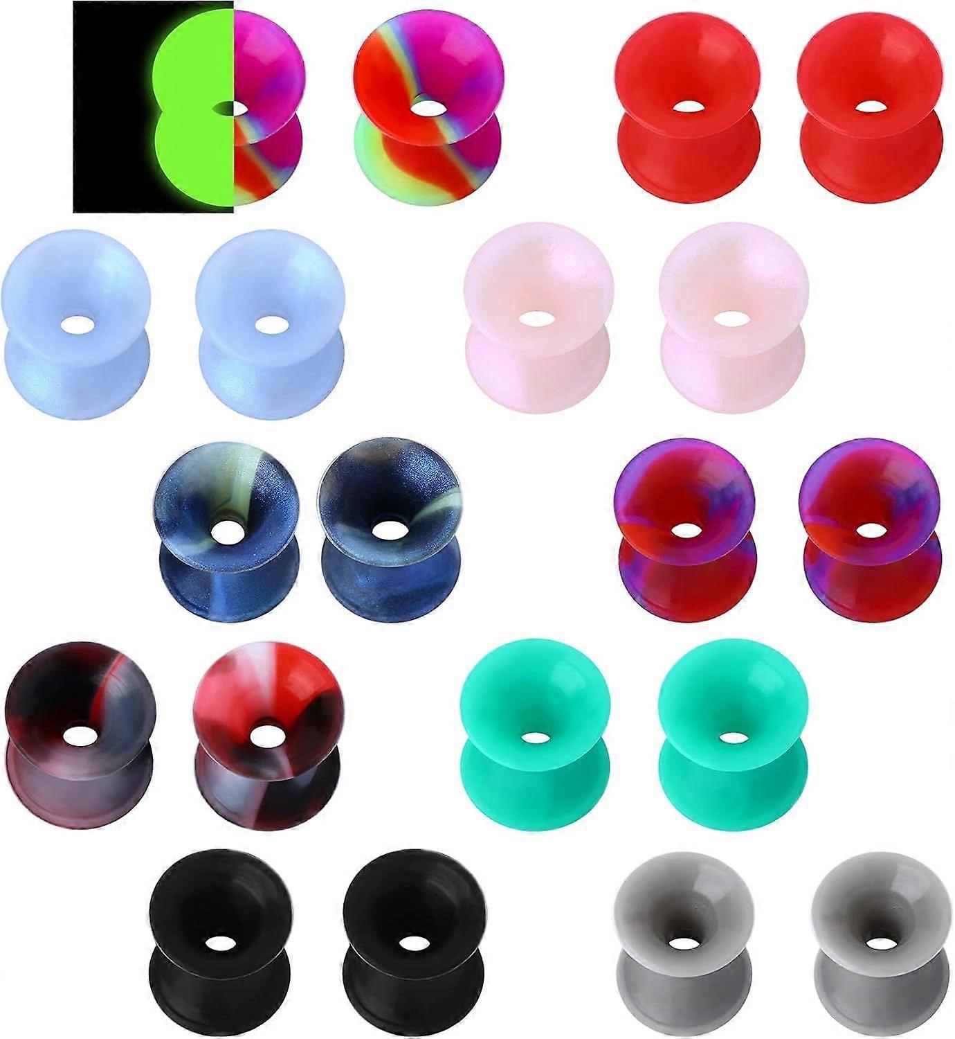 20 PCS Thin Silicone Ear Gauges - Flexible Double Flared Tunnel Ear Plugs