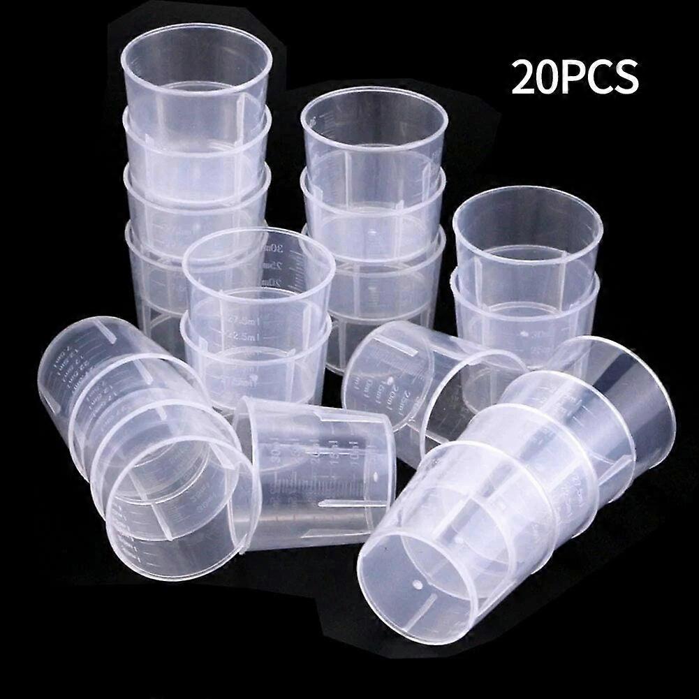 20pcs 10/20/30ml Plastic Measuring Cup Double Scale Transparent Lab Chemical Measuring Cup Without Handle Kitchen Bar Supplies