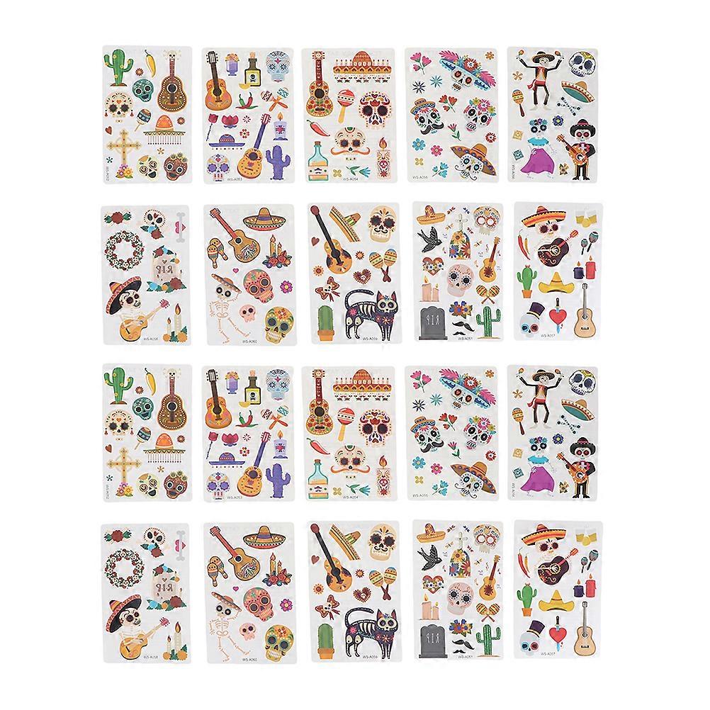 20 Sheets Mexico Day of the Dead Stickers Disposable Stickers Cartoon Temporary Tattoos Decorative Sticker