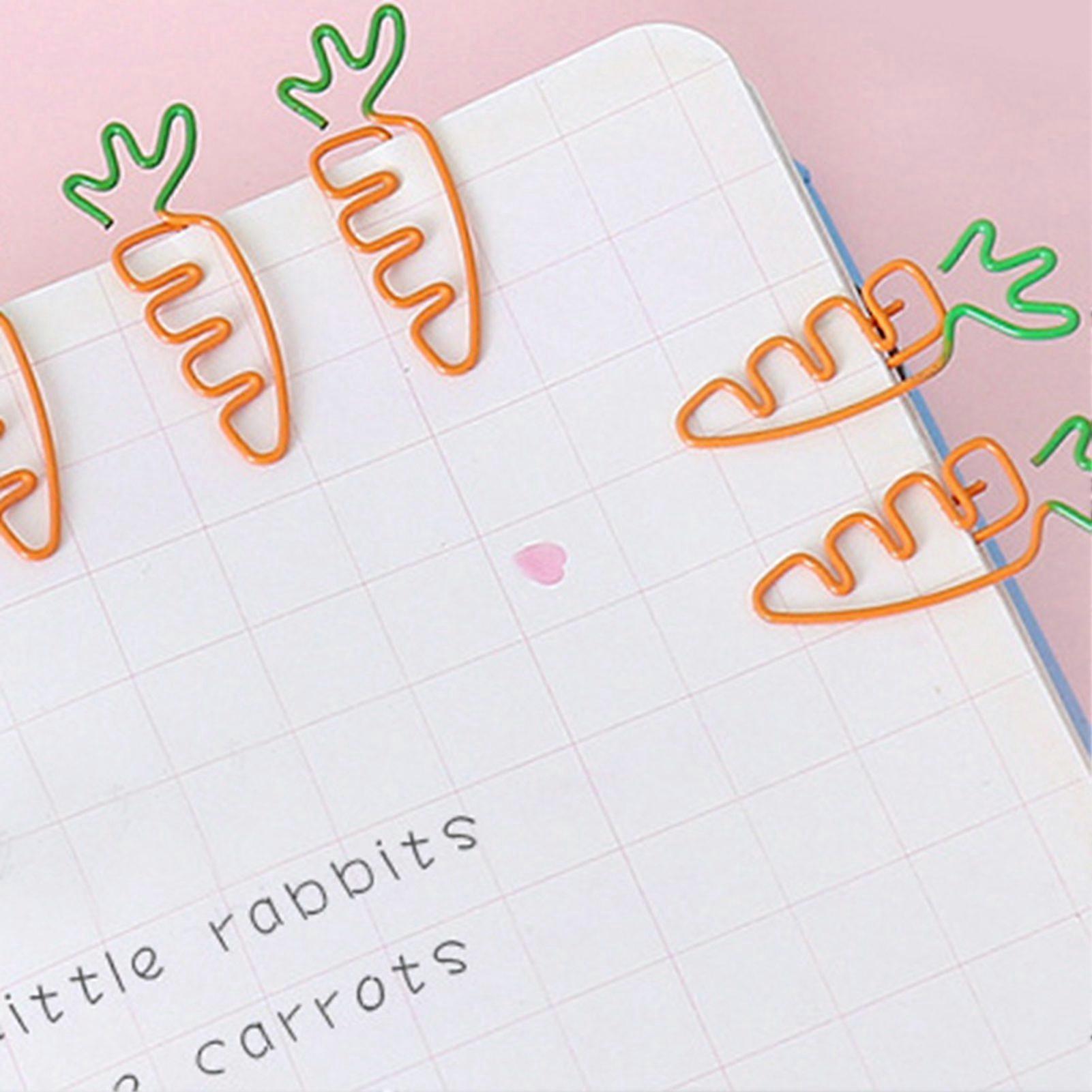 20Pcs Paper Clip Cartoon Carrot Shaped Dual Color Cute Paperclips for Files Planner
