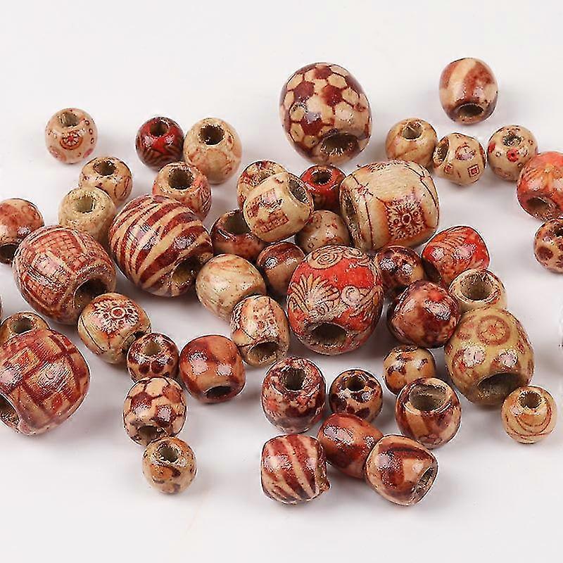 200 Pcs Printed Wooden Beads Natural Round Wood Ball Colorful Craft Beads Barrel Wooden Bead