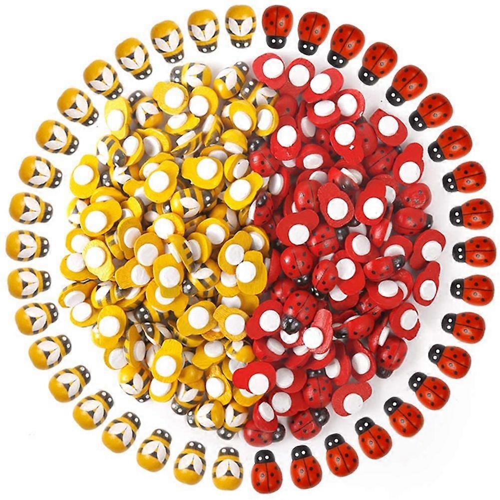 200Pcs Wooden Bees Ladybugs,for Crafts Scrapbooking Party Decoration