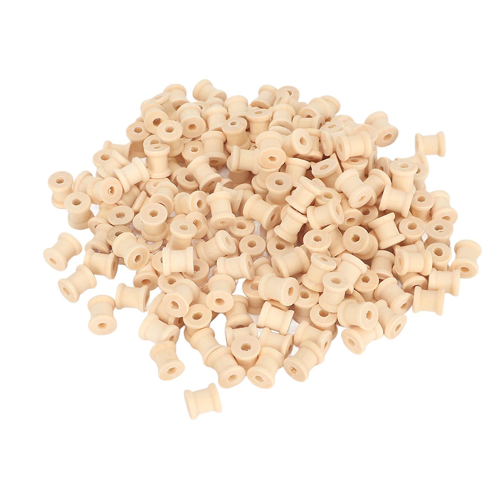 200Pcs Wooden Spools 0.55in and 0.51in Unfinished Polished Wood Barrel Spools for Threading Crafting and Decoration Projects
