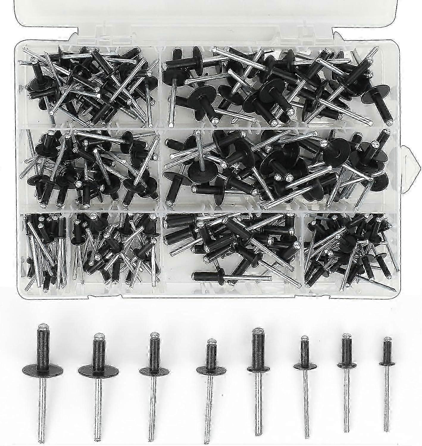 200 Pieces Aluminum Blind Pop Rivets,8 Sizes Black Pop Rivet Assortment Kit For Metal, Wood, Plastic-QJWL