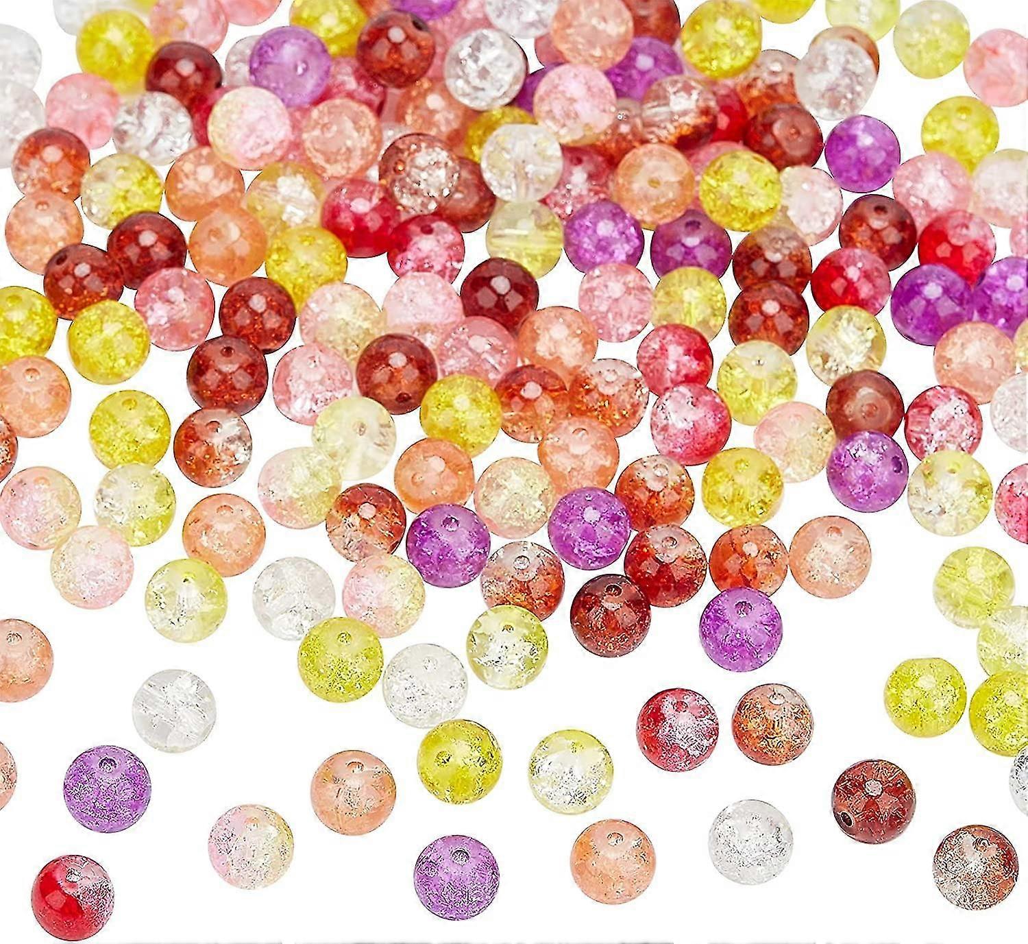 200pcs 10 Color Crackle Lampwork Glass Beads 8mm Handcrafted Round Crystal Loose Beads for Necklace, Bracelet, Earring Jewelry Making