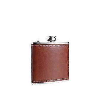 200 ml, stainless steel flask with leatherette coating, small flask for on the go, brown