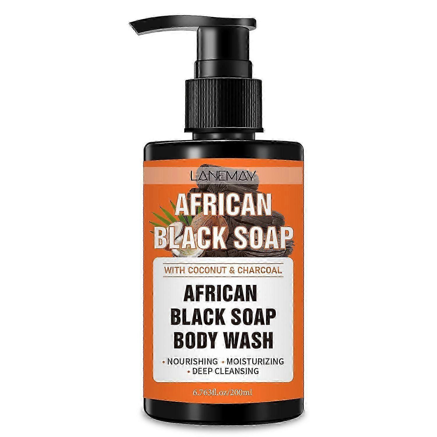 200ml African Black Soap Exfoliating Body Wash with Coconut and Charcoal, Scrub, Soften, Stimulate, For All Skin Types