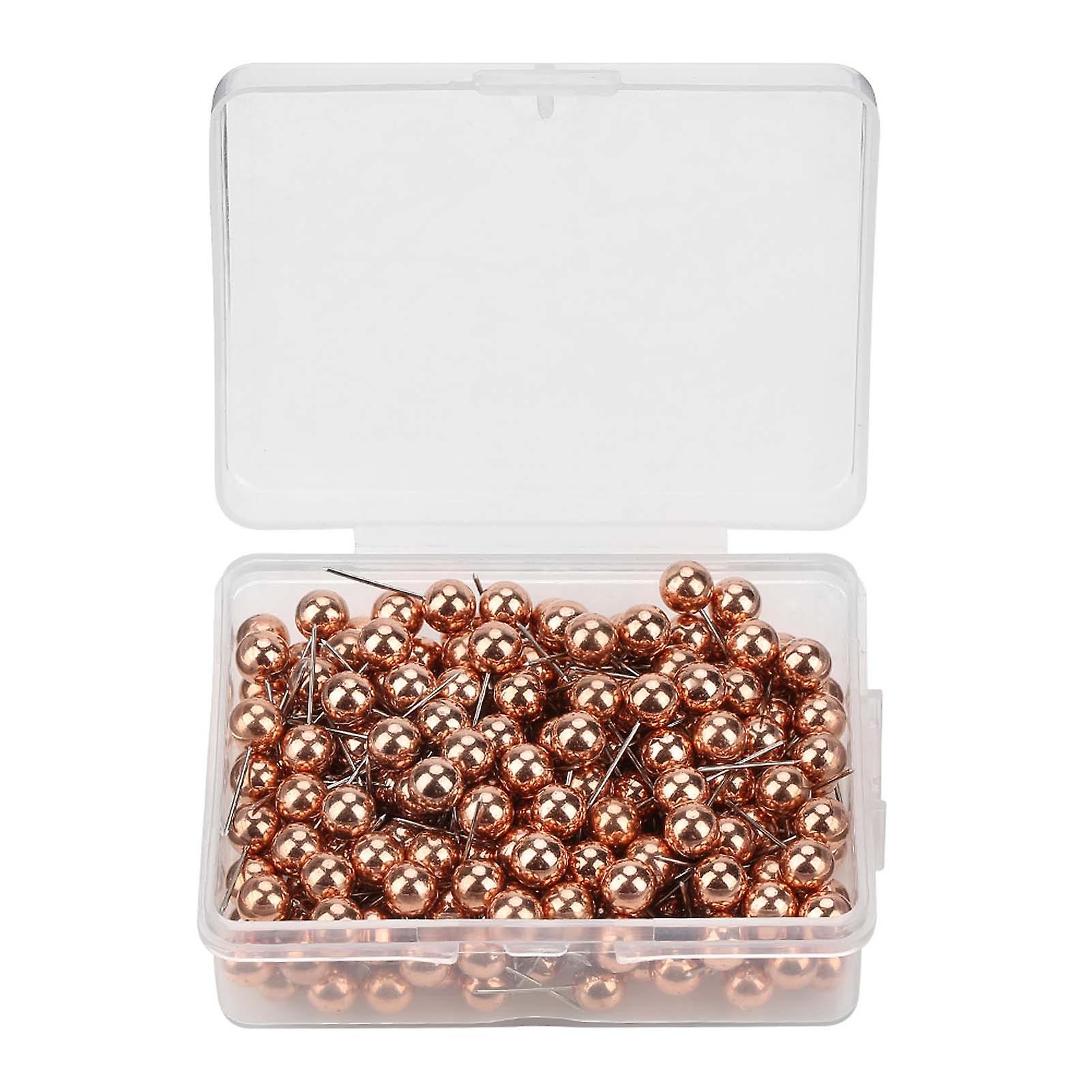 200pcs Round Ball Plastic Pushpin Thumbtack Pins Decorative DIY Tool (Rose Gold)