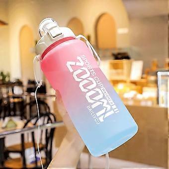 2000 مل بلوري متدرج اللون كوب ماء رياضي كبير السعة في الهواء الطلق زجاجة مياه محمولة من القش