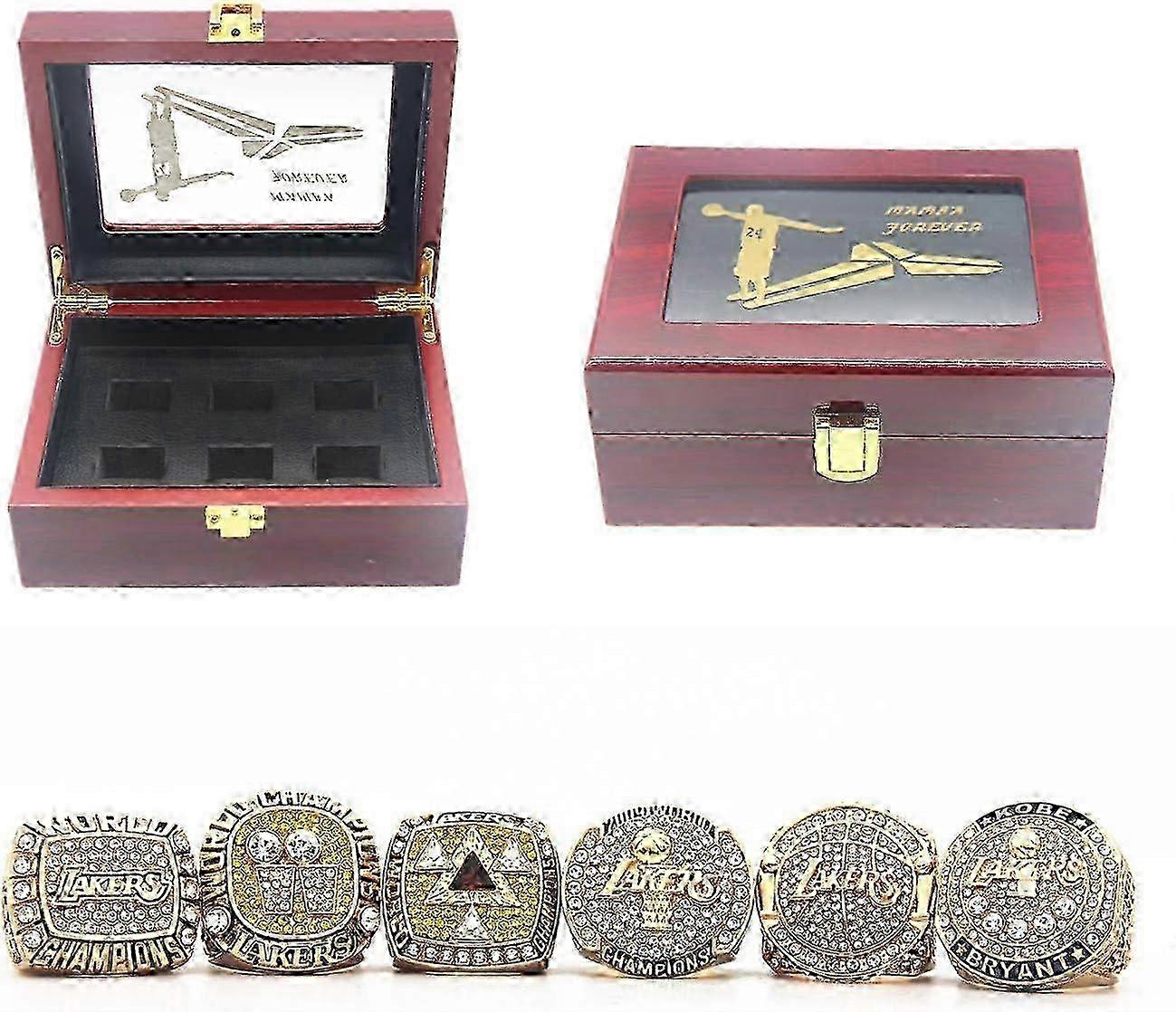 2000 2001 2002 2009 2010 LA Championship Replica Ring Lakers rings set Size 11 with Deluxe Wood Box and 2016 K'o'b'e Retirement Commemorative Mamba Fo