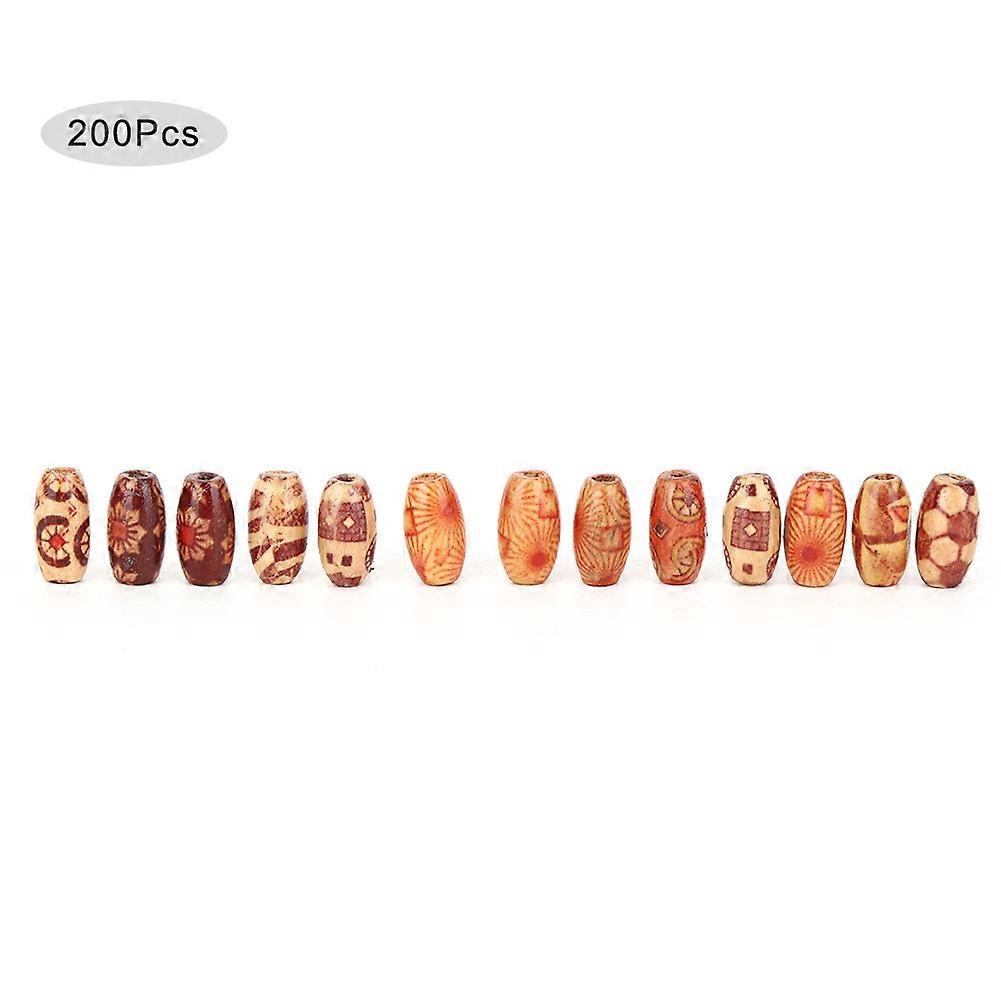 200pcs Unique Wood Beads Colorful Painted Mixed Pattern Bead Diy Material Accessories 15x7mm