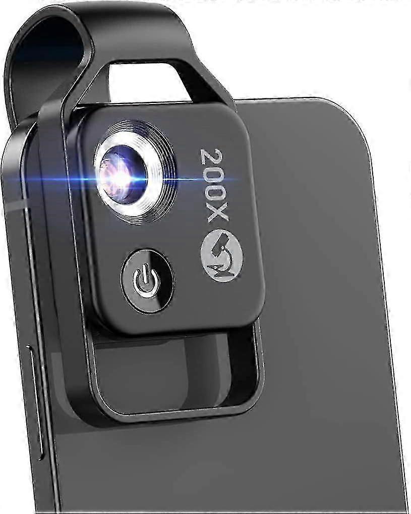200X Phone Pocket Microscope with LED Light, Portable Digital Microscope Camera Attachments Clip-On Microscopic Phone Lens for 99% Smartphone