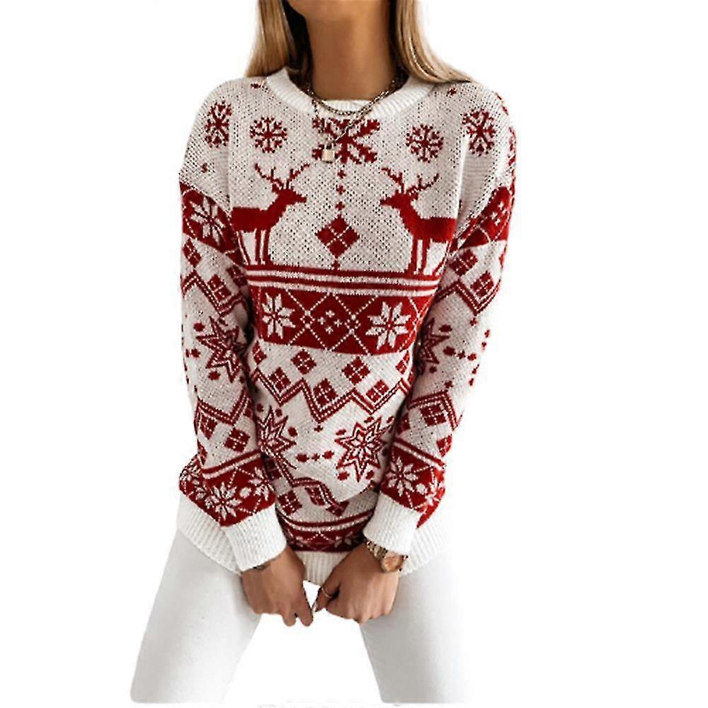 2021 New Women Christmas Sweater Xmas Elk Knit Pullover Jumper Top