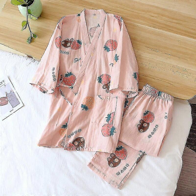 2021 New Seven Sleeve Japanese Style Kimono Pajamas Set Female Spring