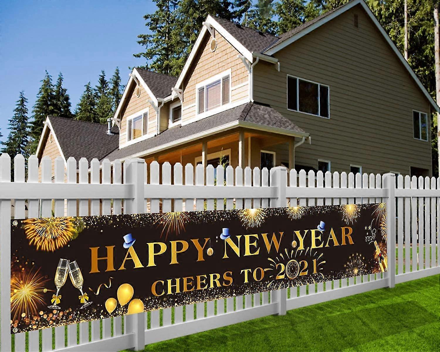 2021 New Year Decorations, New Year Party Decorations, Happy New Year Banner, 2021 Banner Cheers, Black And Gold New Year Deco For Garden Home Indoor
