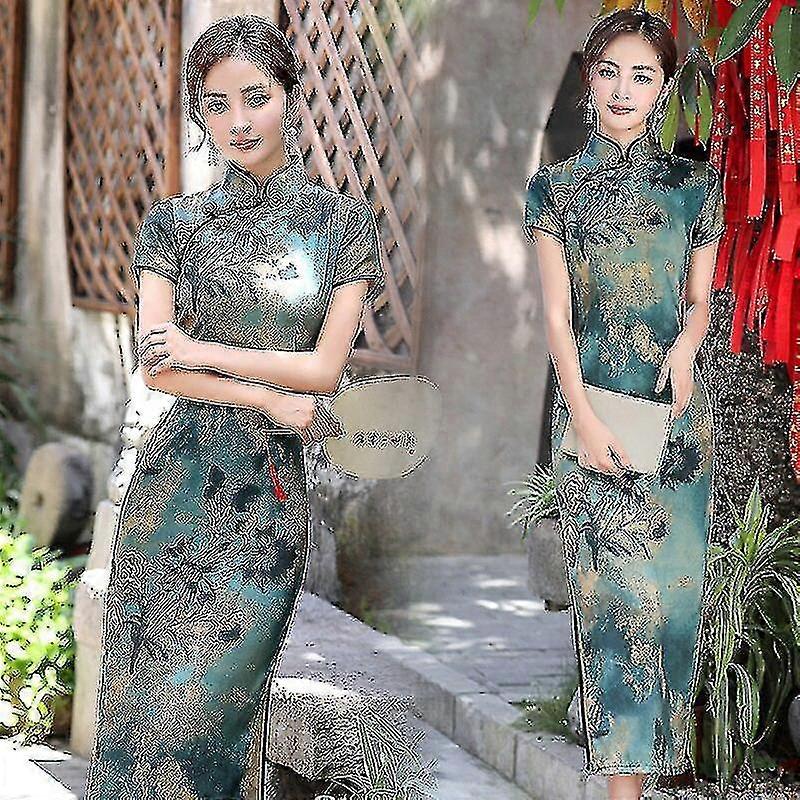 2021 Summer Women's Wear Chinese Style Qipao Long Short Sleeve Satin Fashionable Daily Commuting High-end Elegant Dress 2020