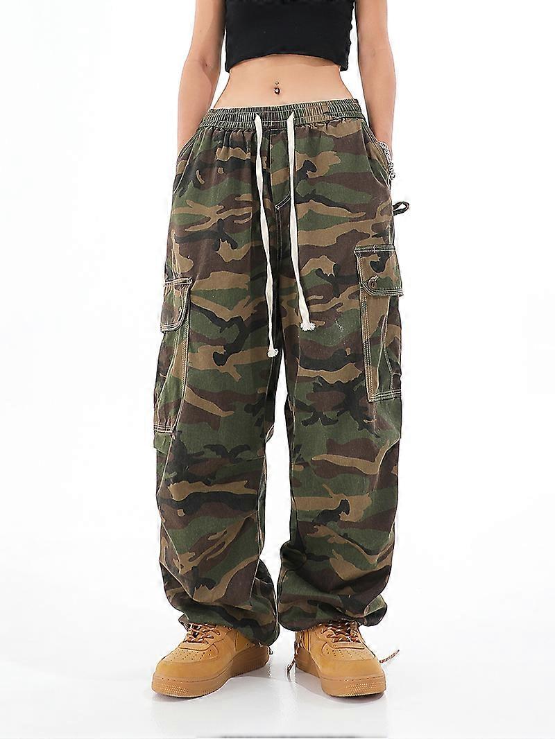 2022 Camouflage Women Cargo Pants Grunge Elastic Waist Hip Hop Sweatpants Unisex Joggers Trousers Vintage Pockets Wide Leg Pants