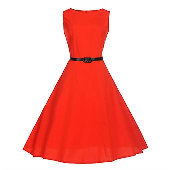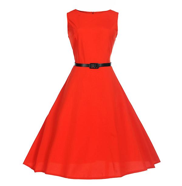 2022 New Women's Retro Hepburn Style Waistband Slimming Solid Color Dress With Belt