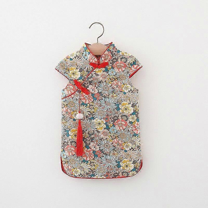 2022 New Baby Girl Clothes Infant Ethnic Style Cheongsam Dress Toddler Floral Print Dresses Children Summer Outfits