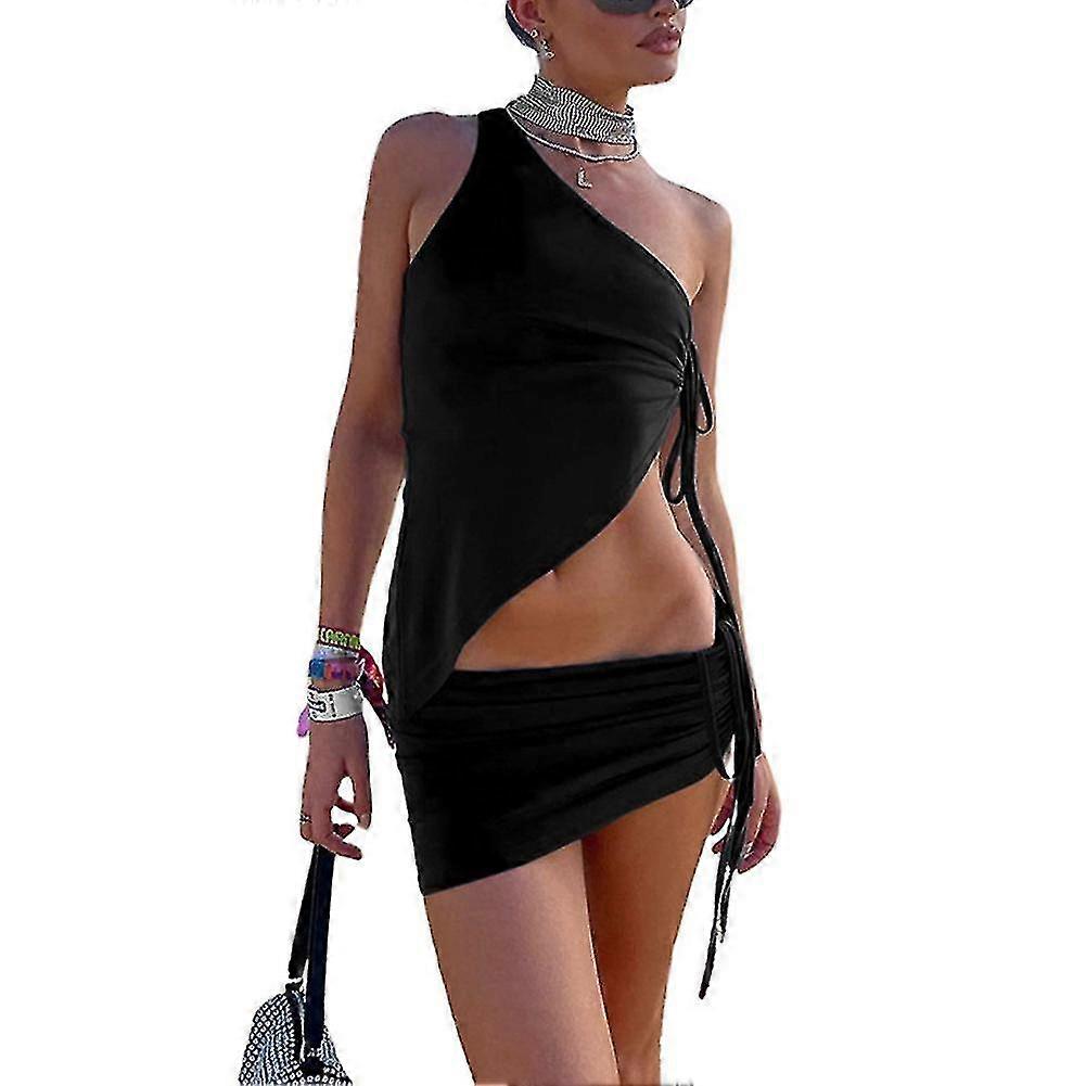 2022 Drawstring Dress Summer Sets Womens Outfits Shoulder Crop Top And Mini Skirts Sets Co-ord Club Party