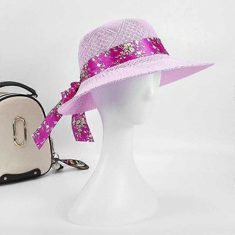 2022 New Summer Sun Hats For Women Wide Brim Bowknot Straw Hat With Ribbon Outdoor Sun Protection Girls Hats Ladies Panama Caps