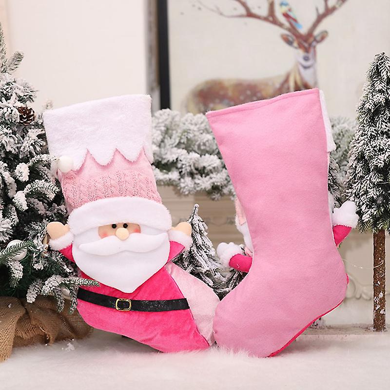 2022 Large Pink Xmas Sock Kids Child Candy Gift Bag Snowman Tree Hanging Decor