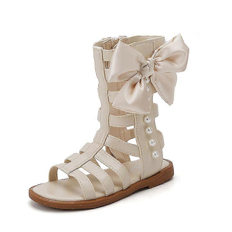 2023 New Children Baby Fashion Korean Leather Beads Shoes Girls Summer Roman Sandals Kids Princess Bow Sandals High Boots SO118