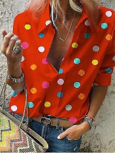 2023 New Polka Dot Blouse Women Turn Down Collar Long Sleeve Shirts Plus Size Clothes Streetwear White Blouse Women