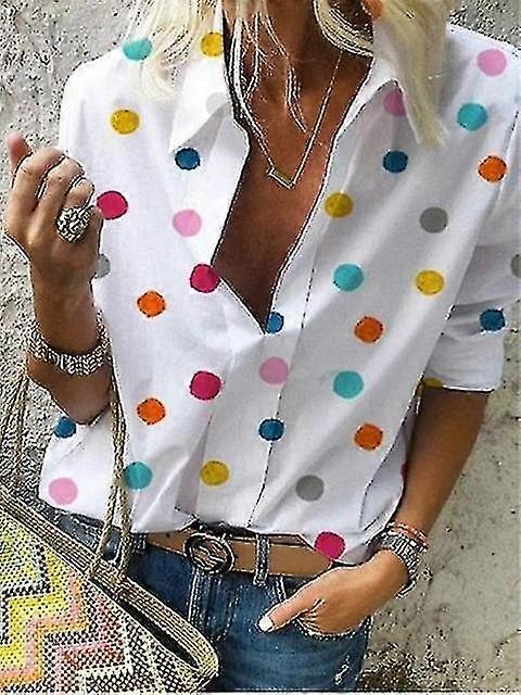 2023 New Polka Dot Blouse Women Turn Down Collar Long Sleeve Shirts Plus Size Clothes Streetwear White Blouse Women