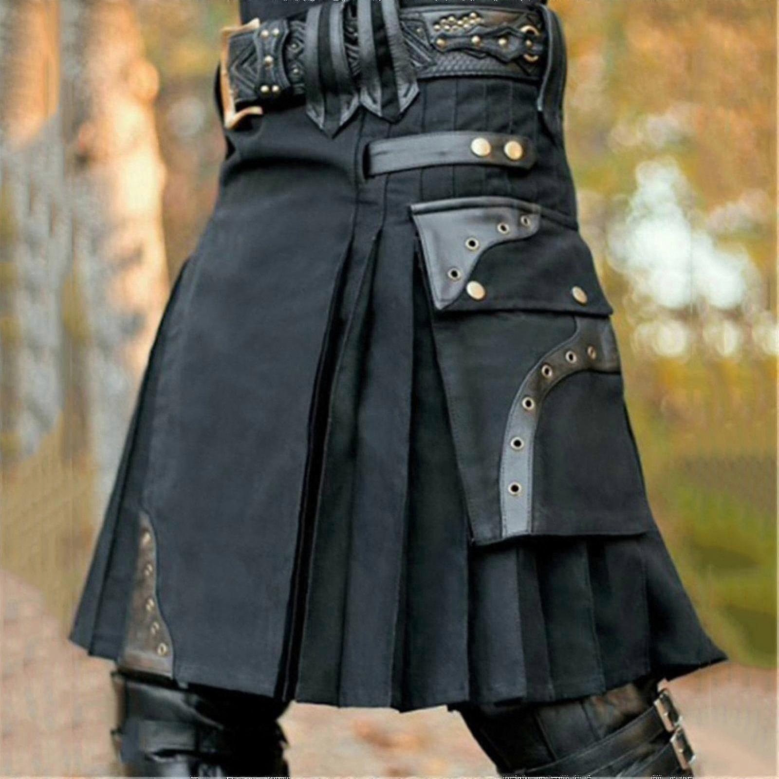 2023 New Men's New Summer Scottish Skirt Pocket Plaid Contrast Stitching Pleated Skirt-YuJia