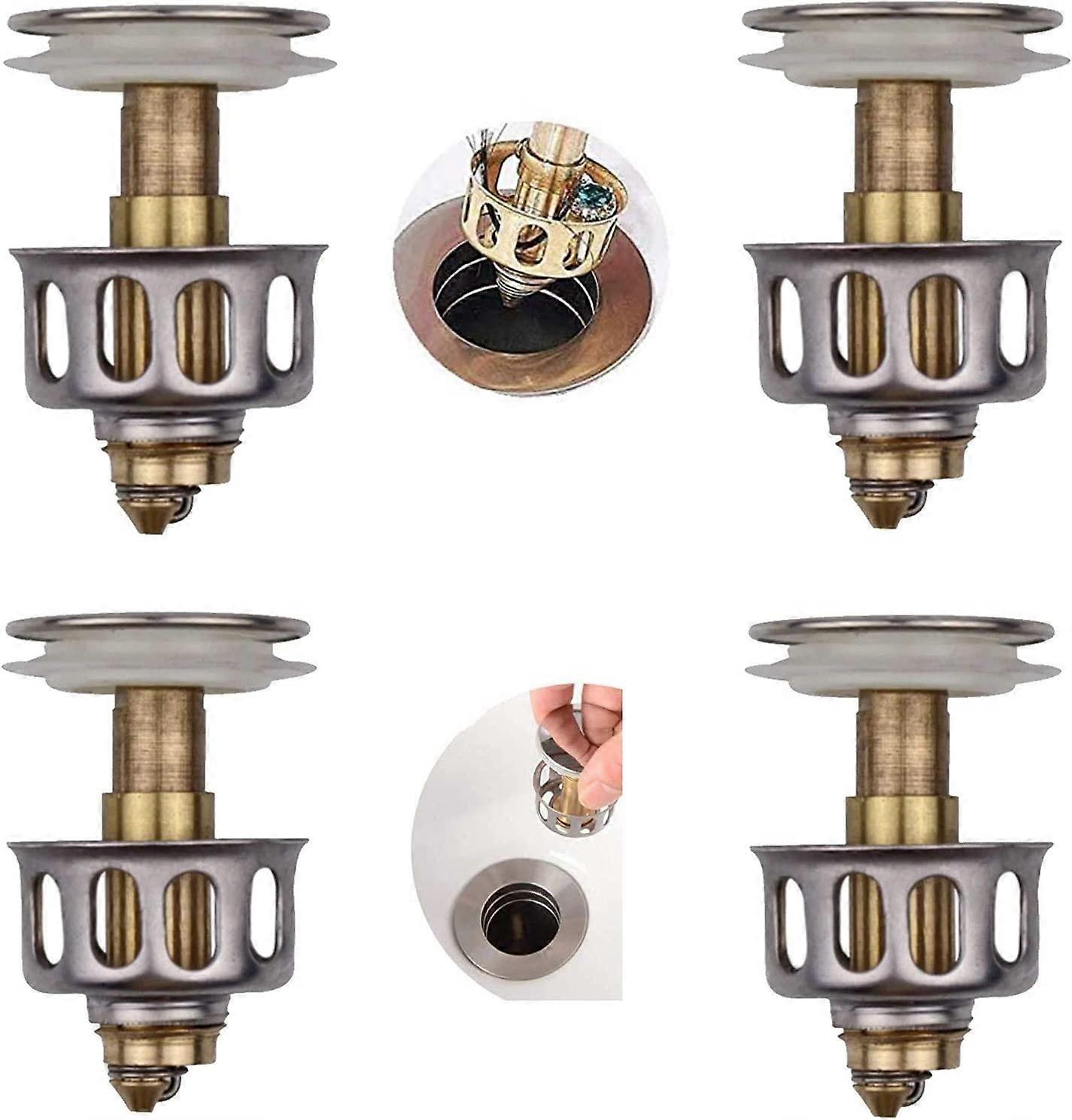 2023 - Universal Wash Basin Bounce Drain Filter, Sink Pop Up Drain Plug Bathroom Sink Drain Plug with Baske