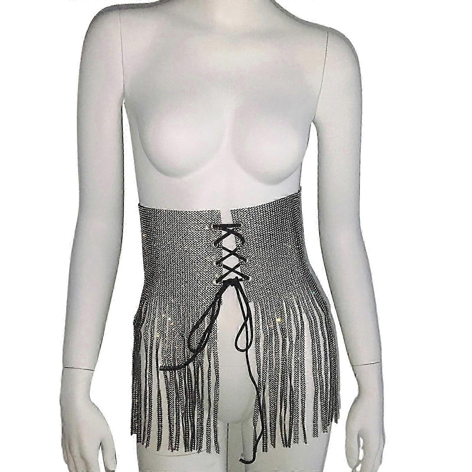2023 New Women Mini Skirt Glitter Rhinestone Tassels Hollow Out Drawstring Adjustable Fahion Streetwear Skirt Sexy Night F L